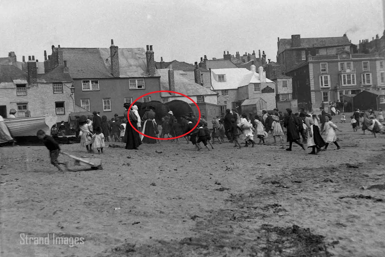 I found it in a box of photos from a Cornish auction. I must admit that I wasn’t too impressed when I first scanned it because no one was looking at camera. But then I looked a little closer at what I thought was a pile of tarpaulins or fishing equipment.