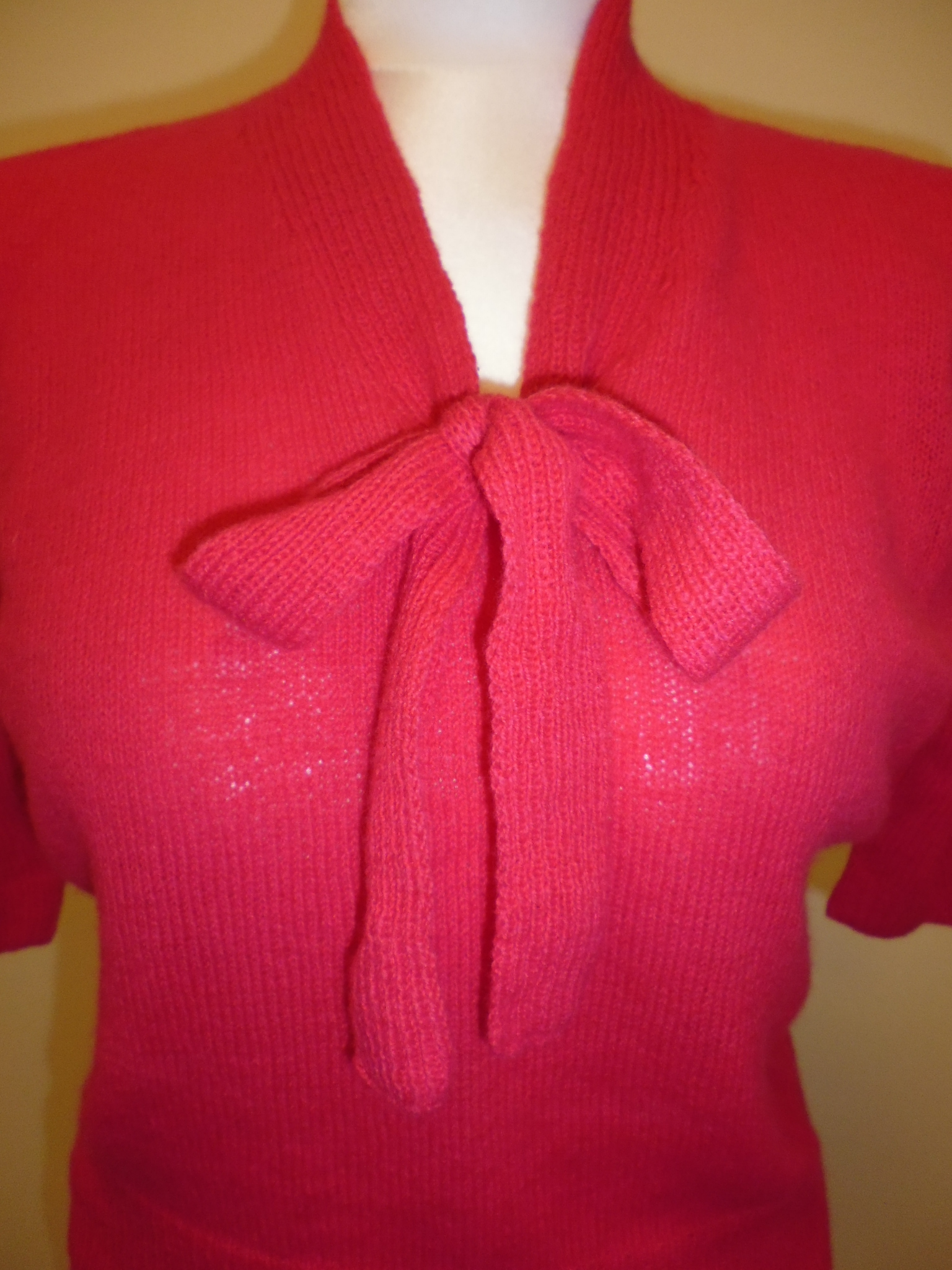 The pattern is for a tie fronted short sleeved jumper, and only has instructions for one size (fortunately mine). To make it larger or smaller, the instructions were to use bigger or smaller needles:
