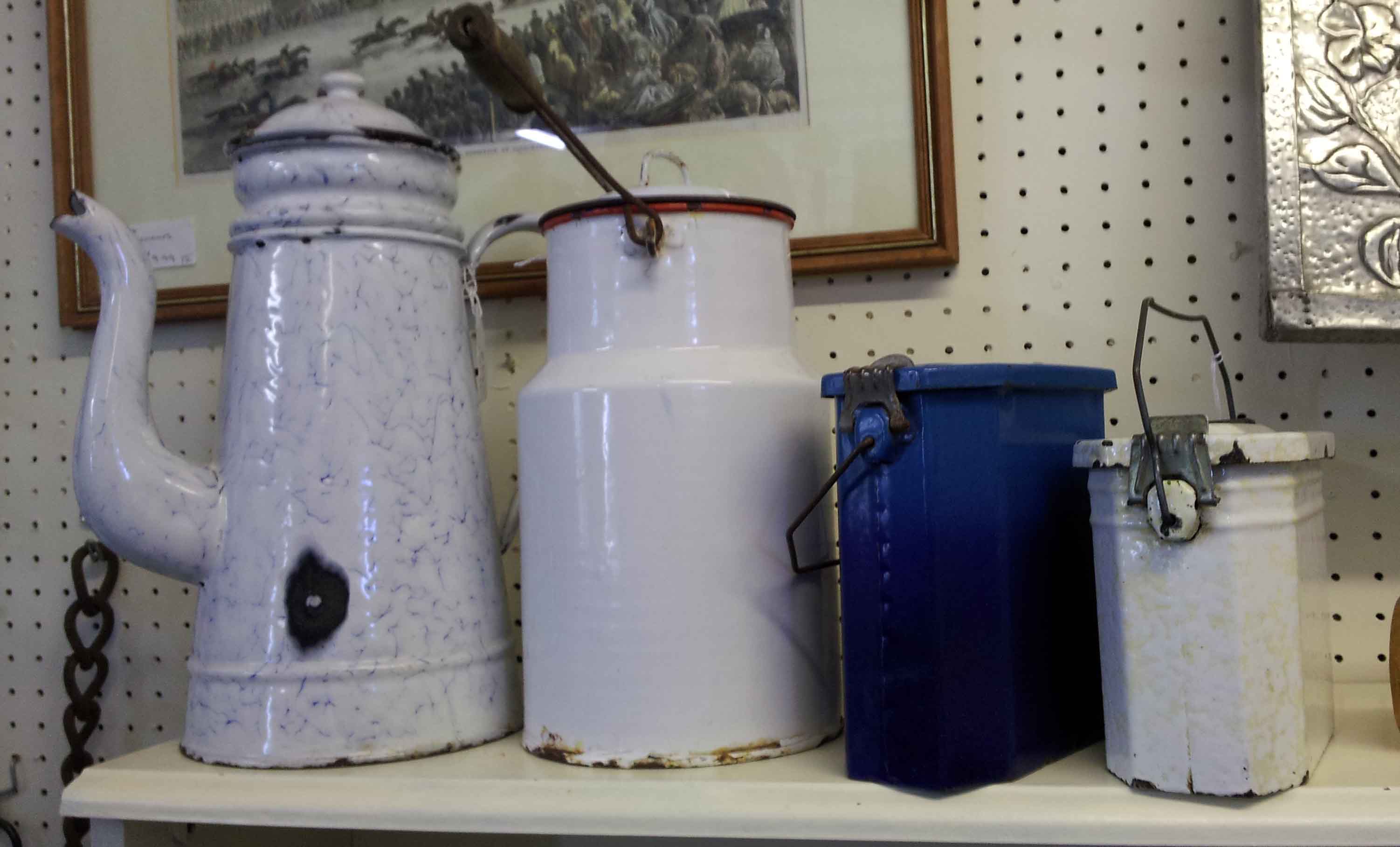These enamel containers, for coffee, milk and lunch look to have come from France.