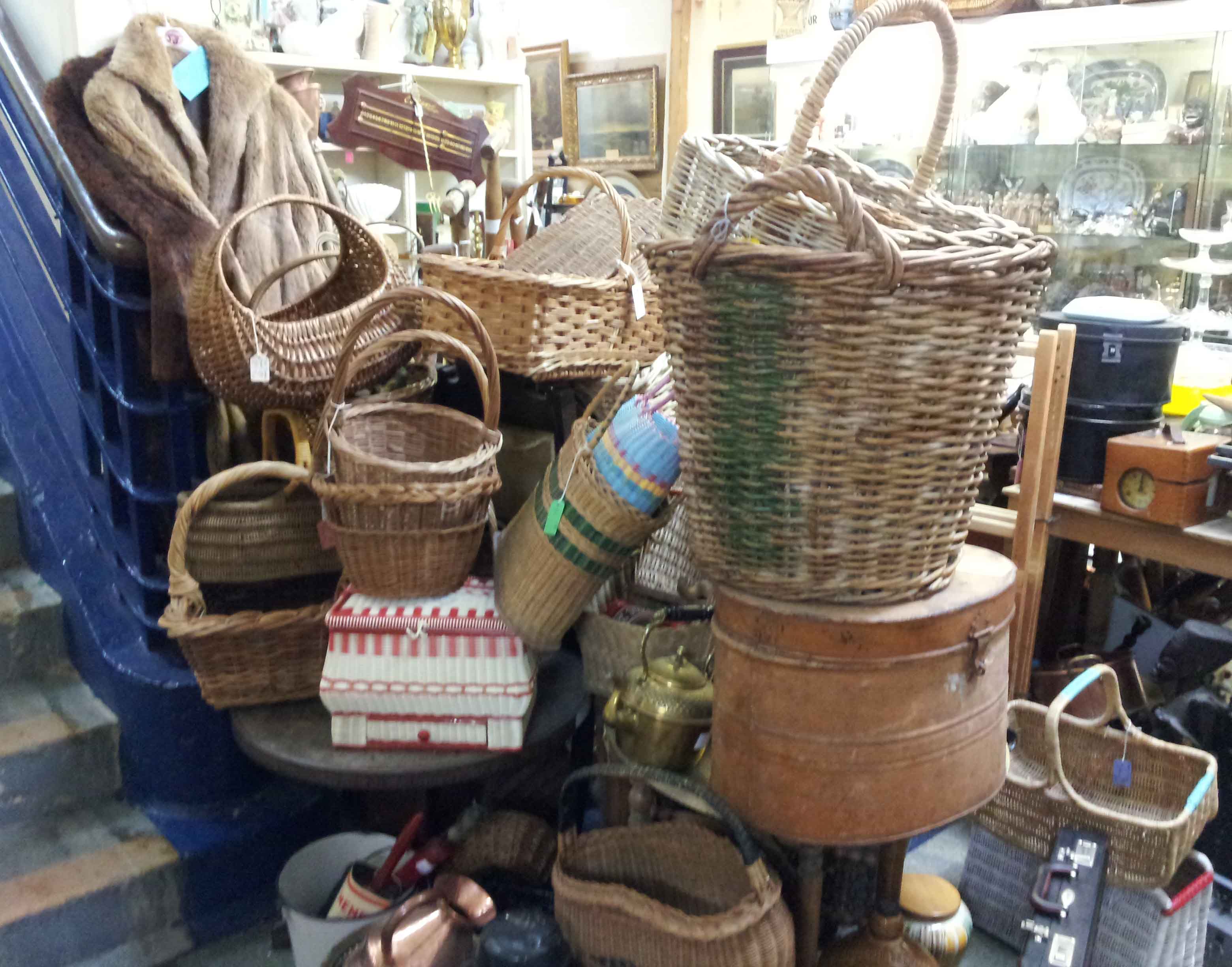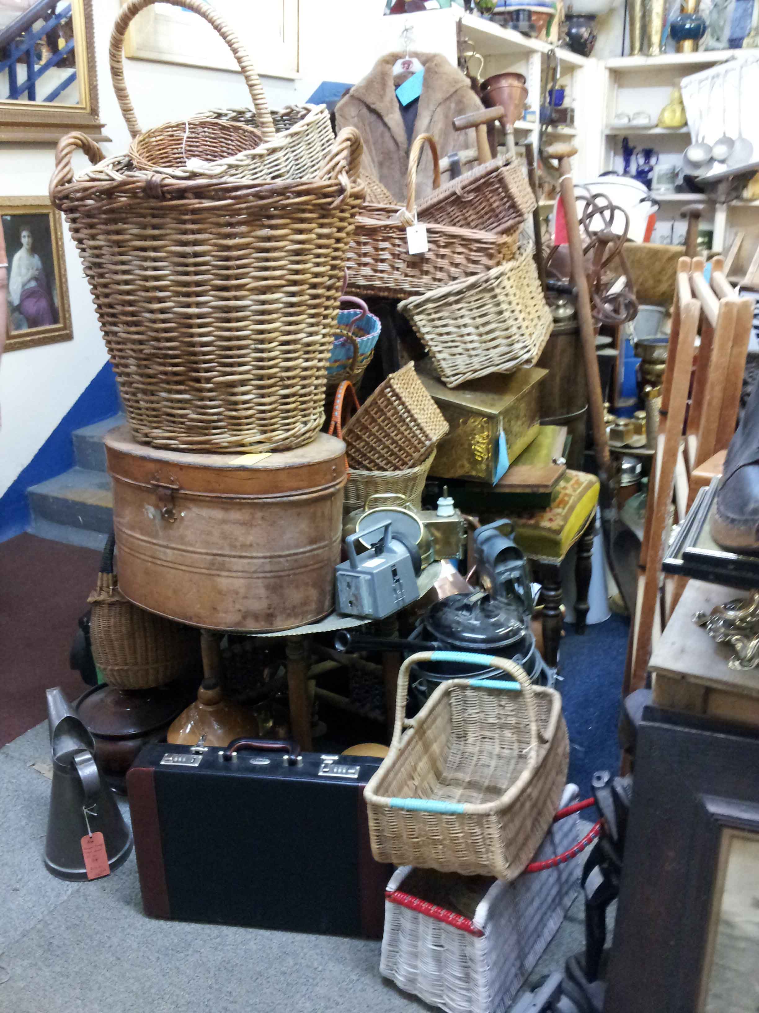 There was a huge pile of baskets at the bottom of the stairs,