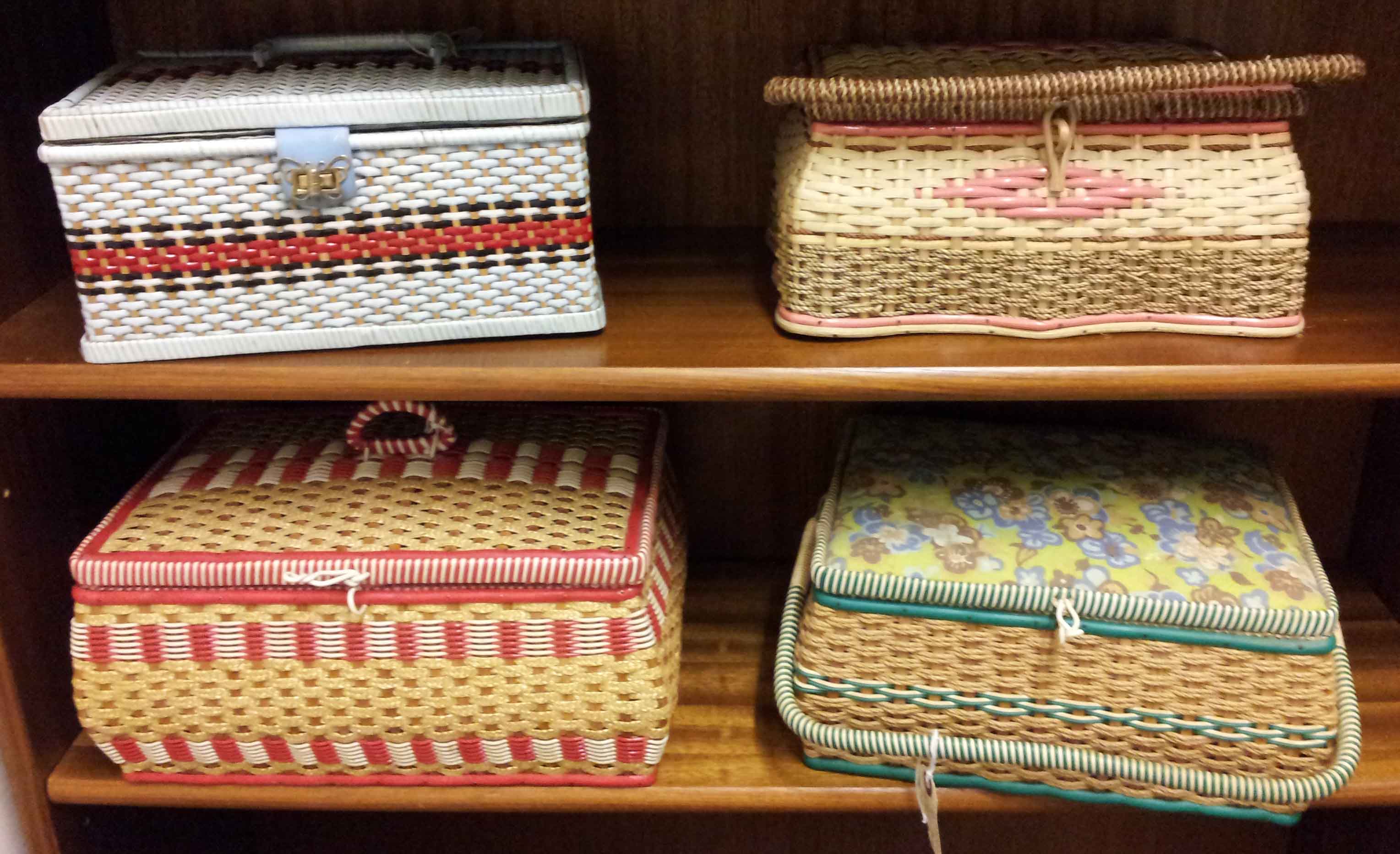 Lovely vintage sewing baskets.