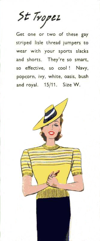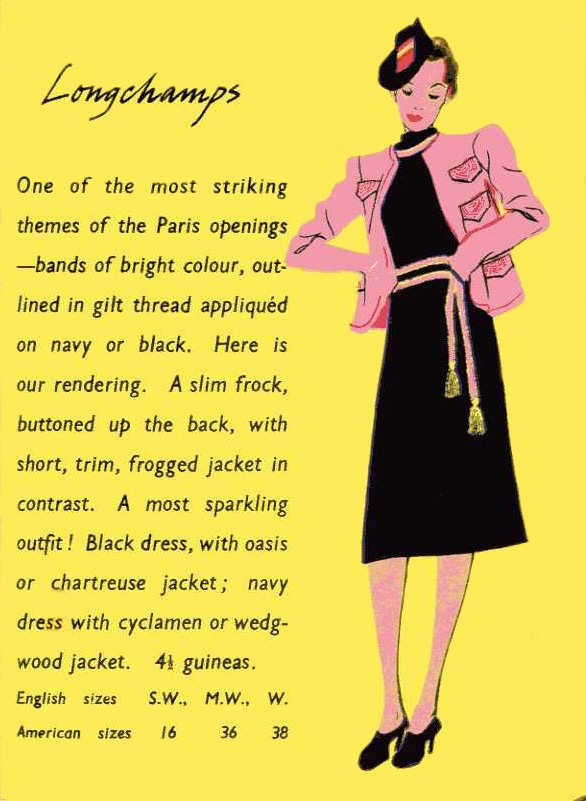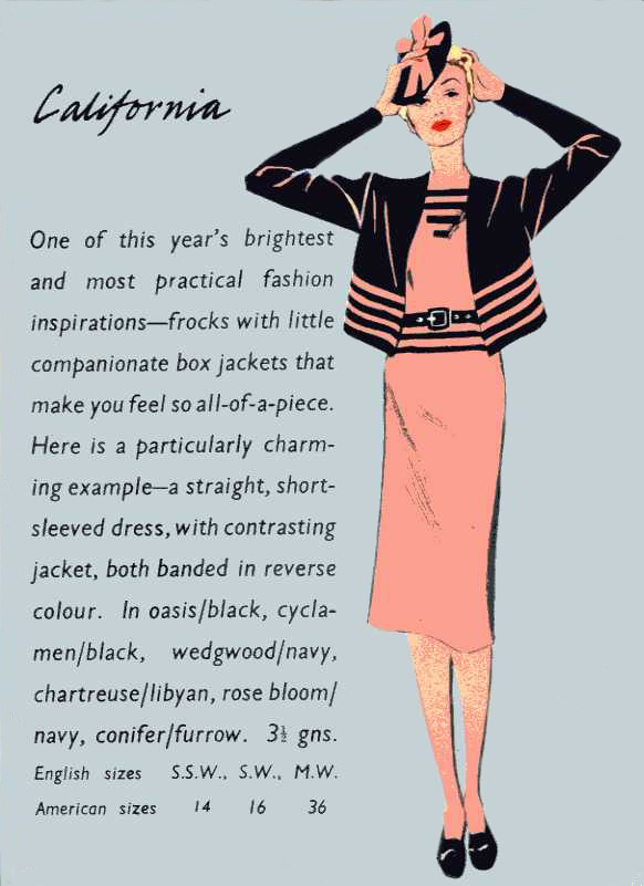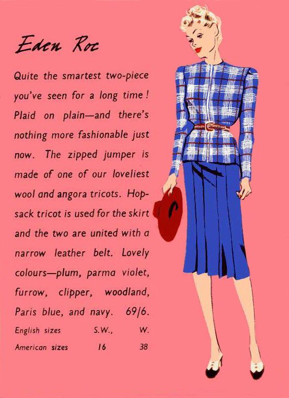 A lovely outfit if you’re tall and slim. I would love to know what the ‘hopsack tricot’ used to make the skirt is – I feel the need for more research.