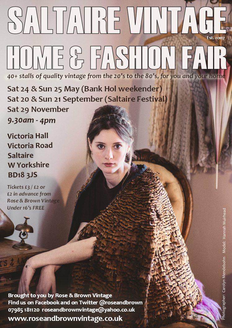 The next Saltaire Vintage Home & Fashion Fair is on Saturday 20 & Sunday 21 September 2014 – during the popular Saltaire Festival, when the village will be full of theatre, music, food, art and more… There will be so much vintage loveliness to choose from at the Fair and both days it takes place from 9.30am – 4pm . Running regularly since December 2007, we now bring you 40+ stalls of vintage treasures including 50’s frocks and Art Deco clocks, teapots and twinsets, oodles of jewellery, vintage toys and so much more, so that you can spend the whole day browsing through the different eras.