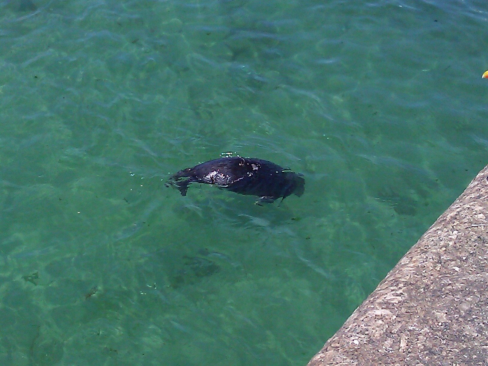 This wily seal was collecting dead fish from the bottom of the harbour where they had been discarded by the fishing boats. He’d then bring them up to the surface to eat them, at which point the seagulls would dive bomb him trying to get their share! Sorry I couldn’t get a better picture but I only had my mobile phone.